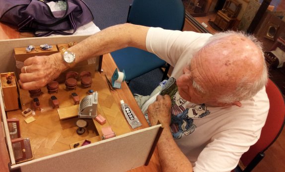 ענת: כפי שסיפרתי אבי יצר בעבר דברים גדולים כמו רהיטים לבית, צעצועים לילדים, תחפושות, תיקים, ועוד. כשפרש לגימלאות בחר ליצור פריטים קטנים שלא תופסים מקום בחלל כדי שיוכל ליצור עוד ועוד. במיניאטורות יכול היה ליצור פריטי ריהוט שונים ומגוונים שלא יצר בגודל טבעי, ולבנות לעצמו עולם מלא של פנטזיה, נוסטלגיה, ודמיון.