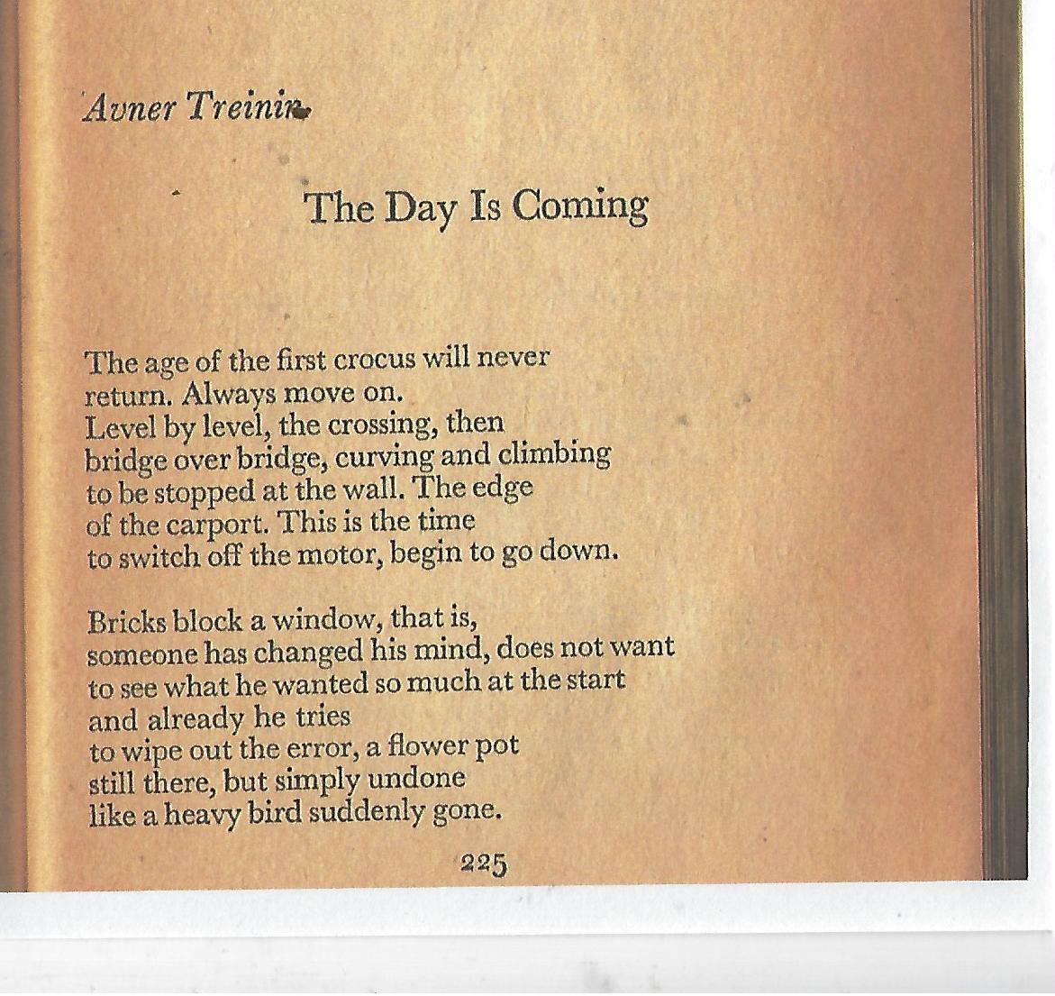 קטע ממאמר באנגלית על אבנר טרינין שכולל תרגומים מהפואמה לאנגלית מכתב העת האקדמאי :