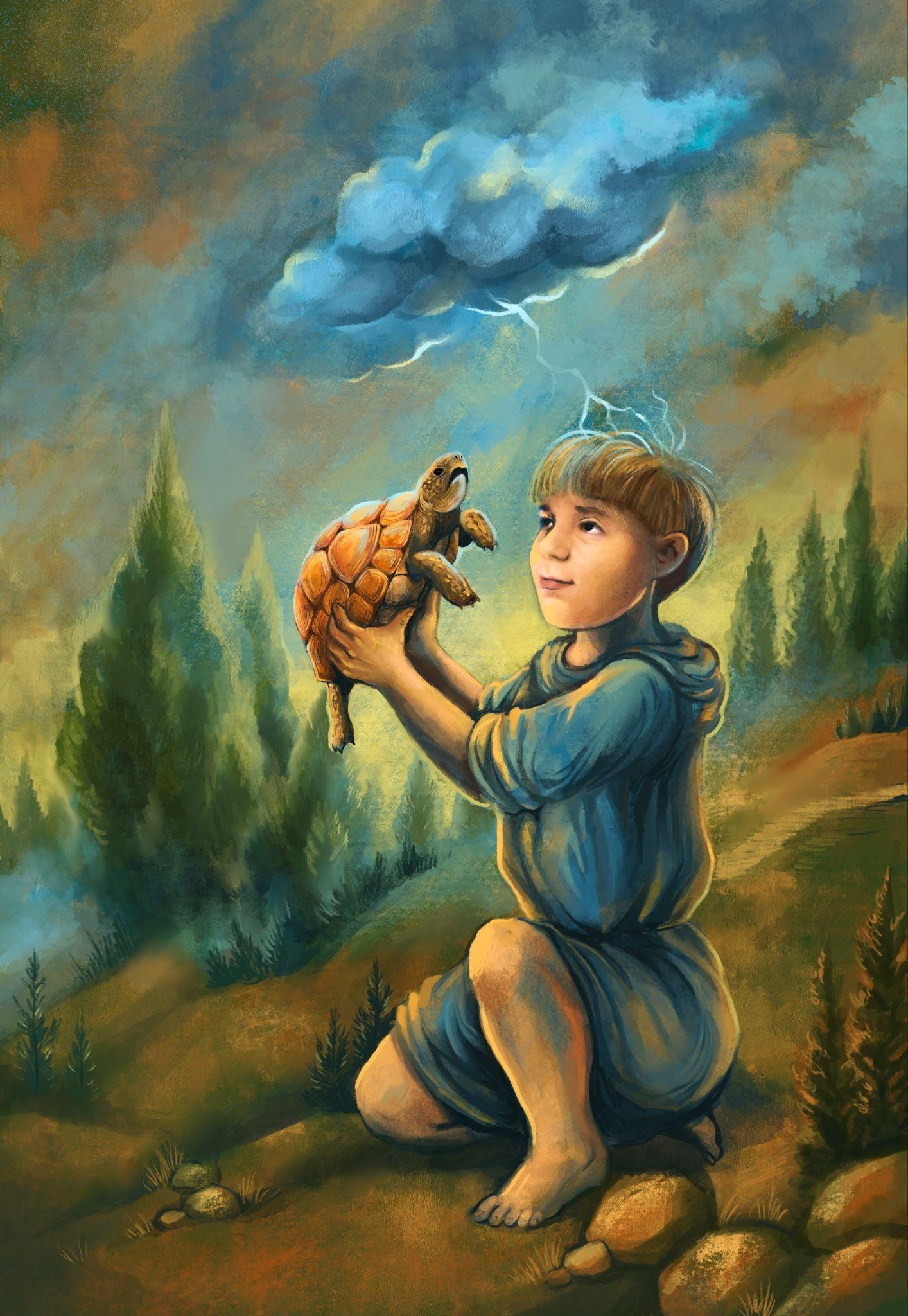 דקה אחרי כן הצב מרגיש שהעולם מתרחק ממנו. הוא רואה את העולם בפעם הראשונה, לא במרחק של שלושה סנטימטרים מן הקרקע, אלא בגובה של מאתיים מטר מעליה והוא חושב: איזה חבר נאמן הוא העיט.